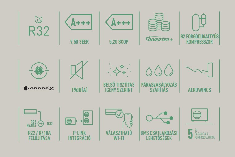 - Hűtő teljesítmény : 2,05 (0,75-2,4) kW